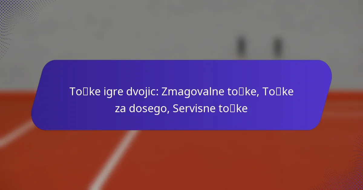 Tekme v dvojicah vključujejo edinstven sistem točkovanja, kjer so zmagovalne točke ključne za zagotavljanje zmage in lahko spremenijo potek tekme. Časovni intervali točkovanja igrajo pomembno vlogo pri oblikovanju tempa in strategije, medtem ko so servisne točke bistvene za pridobitev prednosti med igro. Obvladovanje teh elementov je ključno za igralce, ki si prizadevajo optimizirati svoje nastope na igrišču.