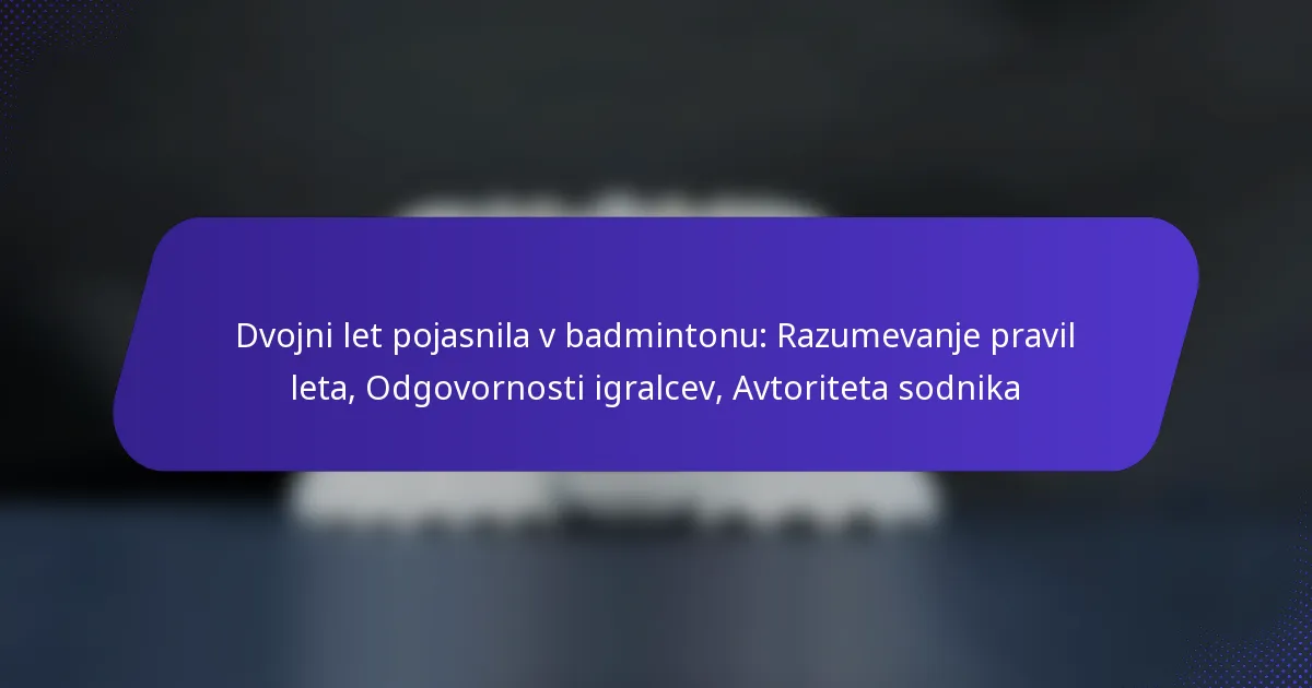V badminton dvojicah se “let” zgodi, ko se točka prekine in ponovi zaradi določenih okoliščin, kar je ključno za igralce in uradnike, da razumejo pravila o letu za pošteno igro. Igralci morajo biti seznanjeni s svojimi odgovornostmi med letom, vključno z prepoznavanjem situacije, komunikacijo s partnerjem in sodnikom ter prilagajanjem svoje strategije. Sodniki imajo avtoriteto za razlago pravil in sprejemanje končnih odločitev o letih, kar pomembno vpliva na potek igre in taktike igralcev.