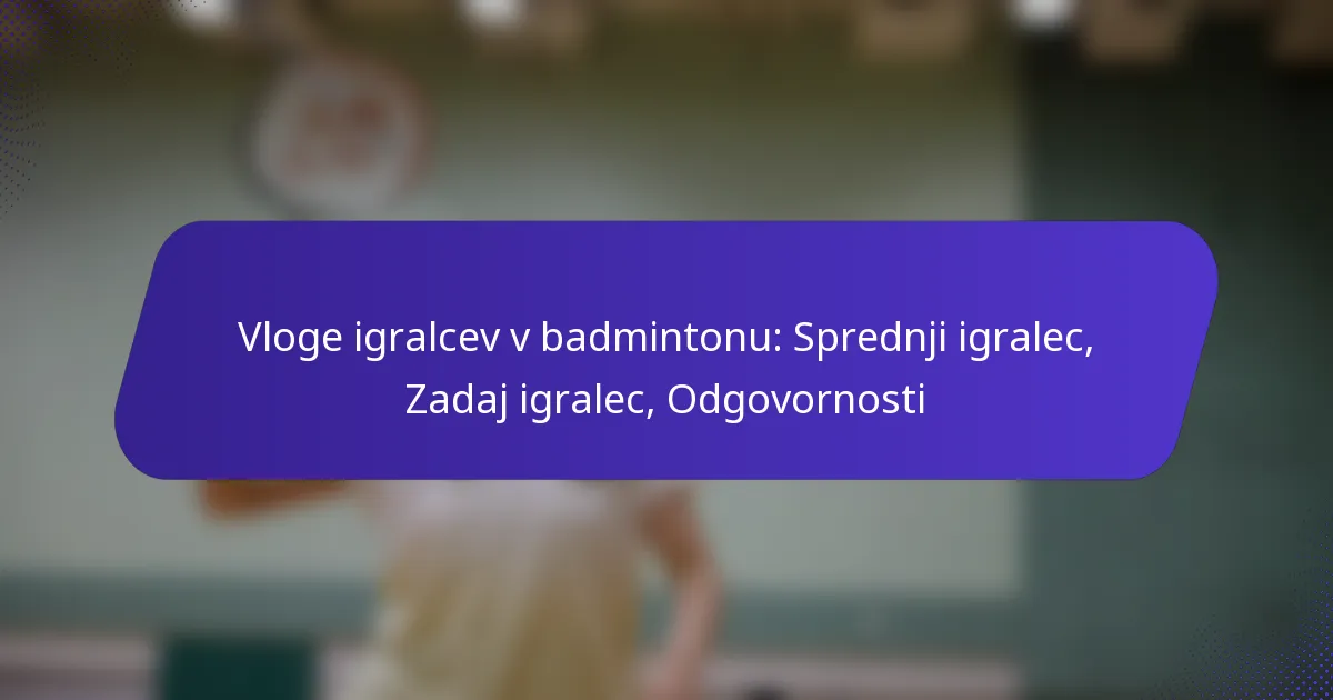 V badminton dvojicah imata sprednji in zadnji igralec različne vloge, ki so ključne za učinkovito timsko delo in strategijo. Sprednji igralec se osredotoča na igro ob mreži in hitre reakcije, medtem ko je zadnji igralec odgovoren za močne udarce in pokritost igrišča zadaj. Razumevanje teh vlog izboljšuje učinkovitost in komunikacijo med tekmami.