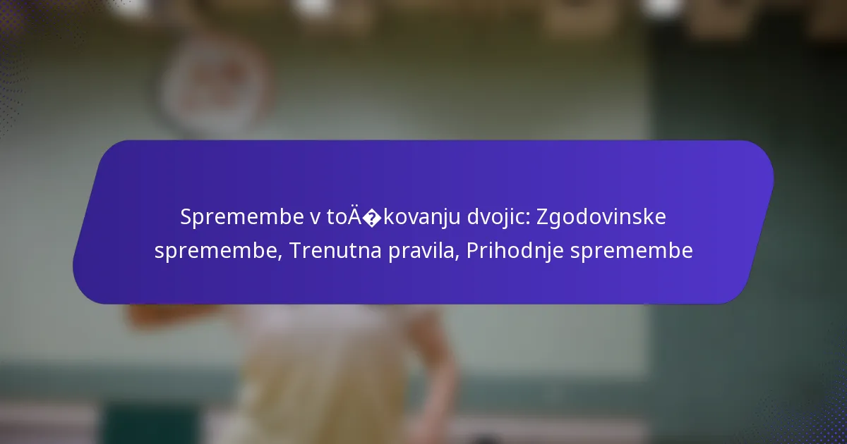 Točkovanje v teniških dvojicah je skozi leta doživelo pomembne spremembe, ki so se razvijale, da bi zadovoljile potrebe igralcev in izboljšale izkušnjo gledalcev. Trenutna pravila ohranjajo strukturo, podobno kot pri posamičnih tekmah, hkrati pa vključujejo edinstvene prilagoditve za dinamiko igre dvojic. V prihodnosti bi lahko spremembe prioritizirale hitrejšo igro in večje angažiranje gledalcev, kar bi bilo spodbudjeno s tehnološkim napredkom in povratnimi informacijami občinstva.
